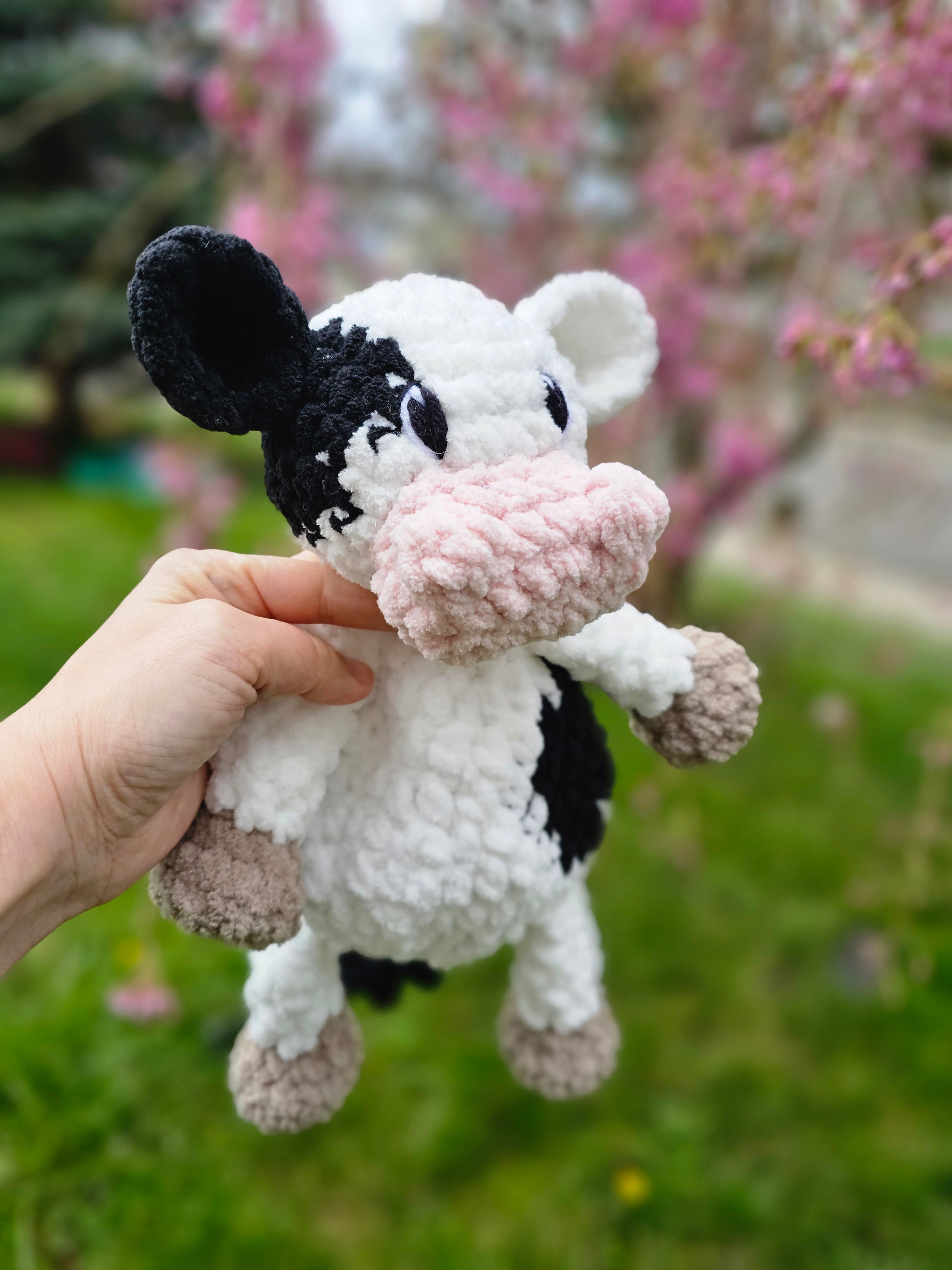 Get cozy with the Cow Snuggler! This adorable farm friend is blanket soft and baby safe with embroidered eyes. Choose between brown or black spots. Snuggle up with this quirky and playful companion!