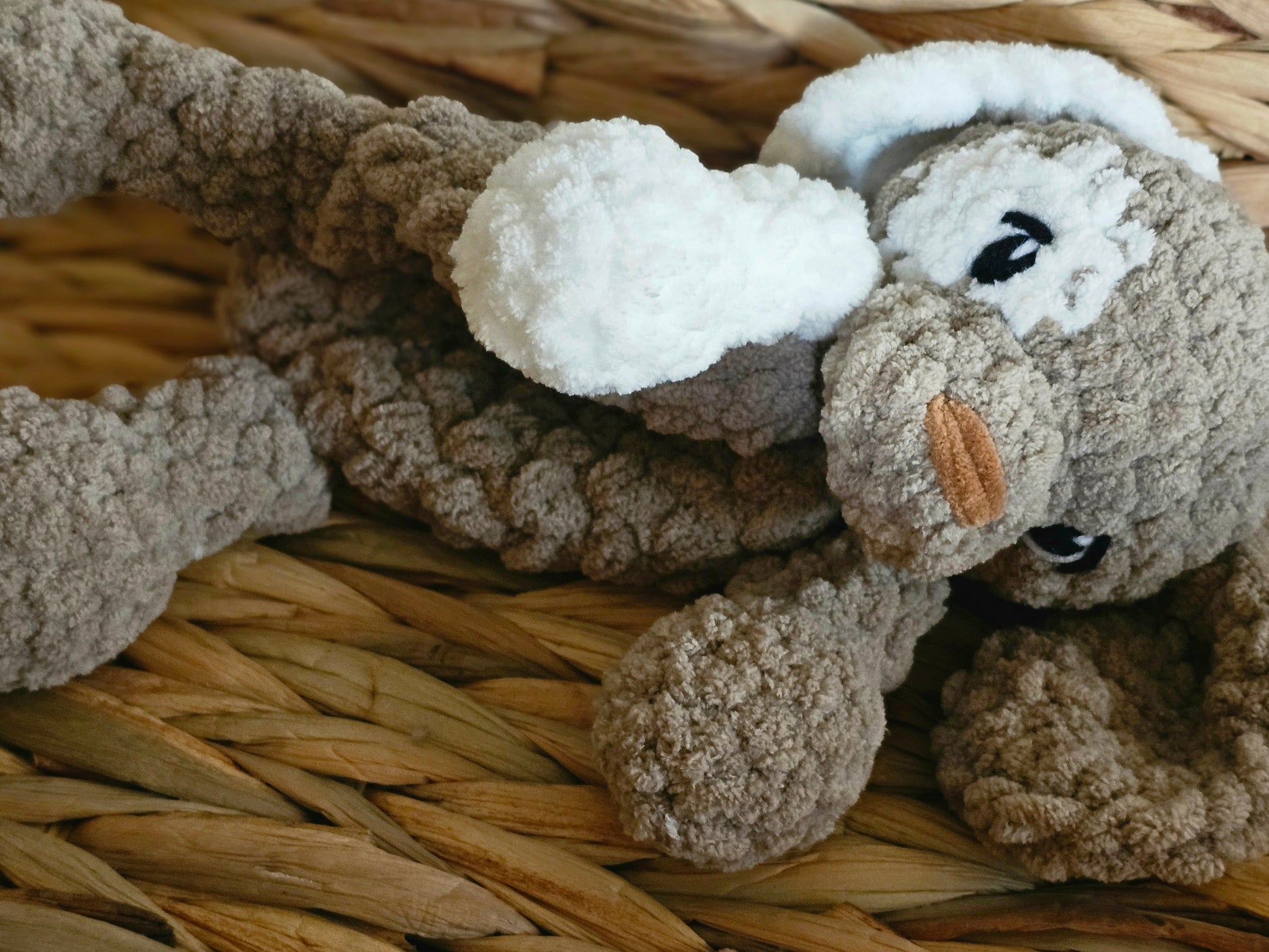 Meet your new snuggle buddy - the Puppy Snuggler! This crochet plush is perfect for tiny hands and provides endless cuddles, making it the perfect napping companion. It's like having a new best friend! (Warning: may induce cuteness overload.)