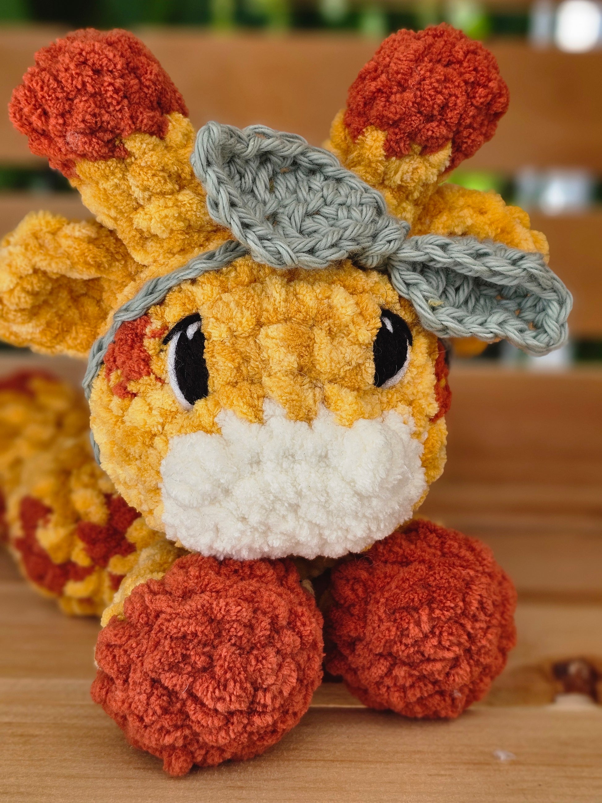 Embroidered eyes make this adorable giraffe safe for all ages.