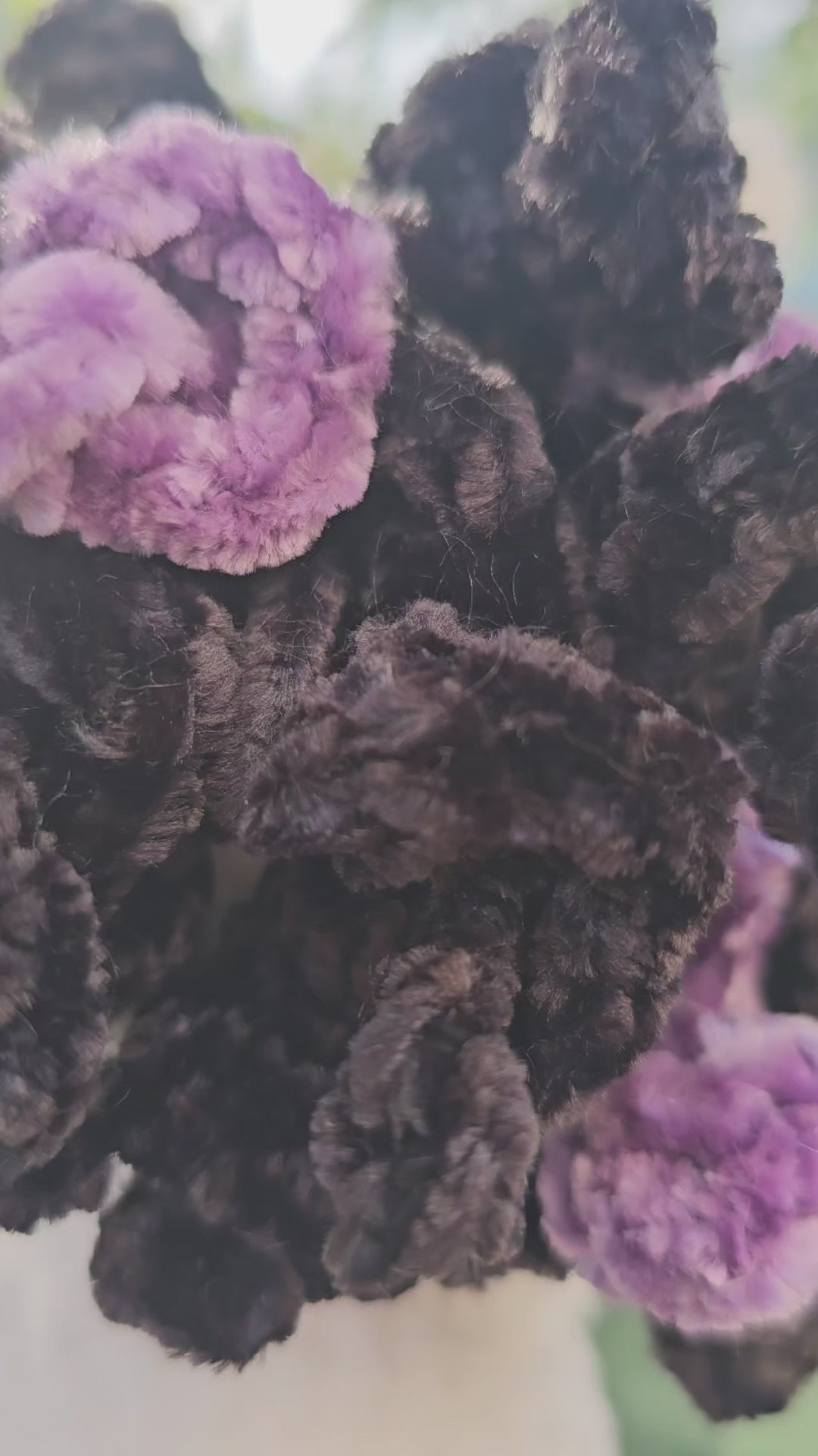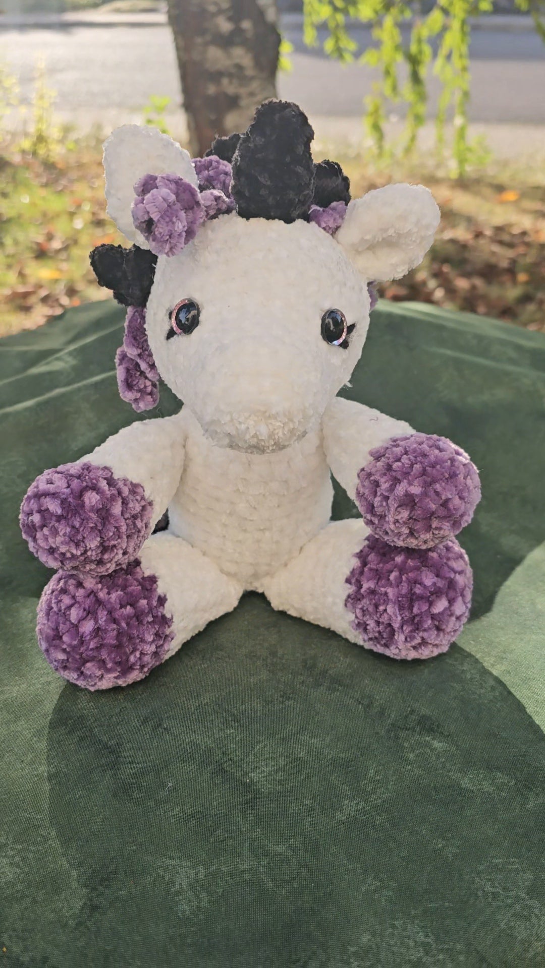 This purple and black crochet velvet unicorn plushie is perfect for anyone looking to add some Halloween fun to their stuffed animal collection. It's soft, cuddly, and totally unique! (Say goodbye to boring old teddy bears.)